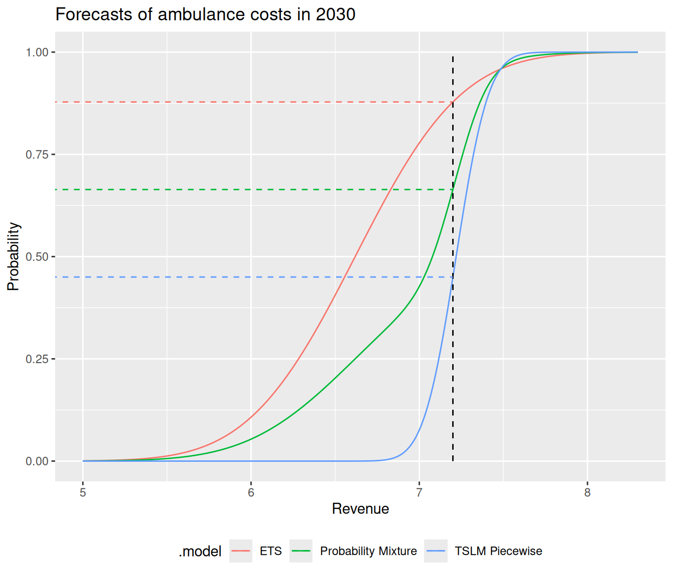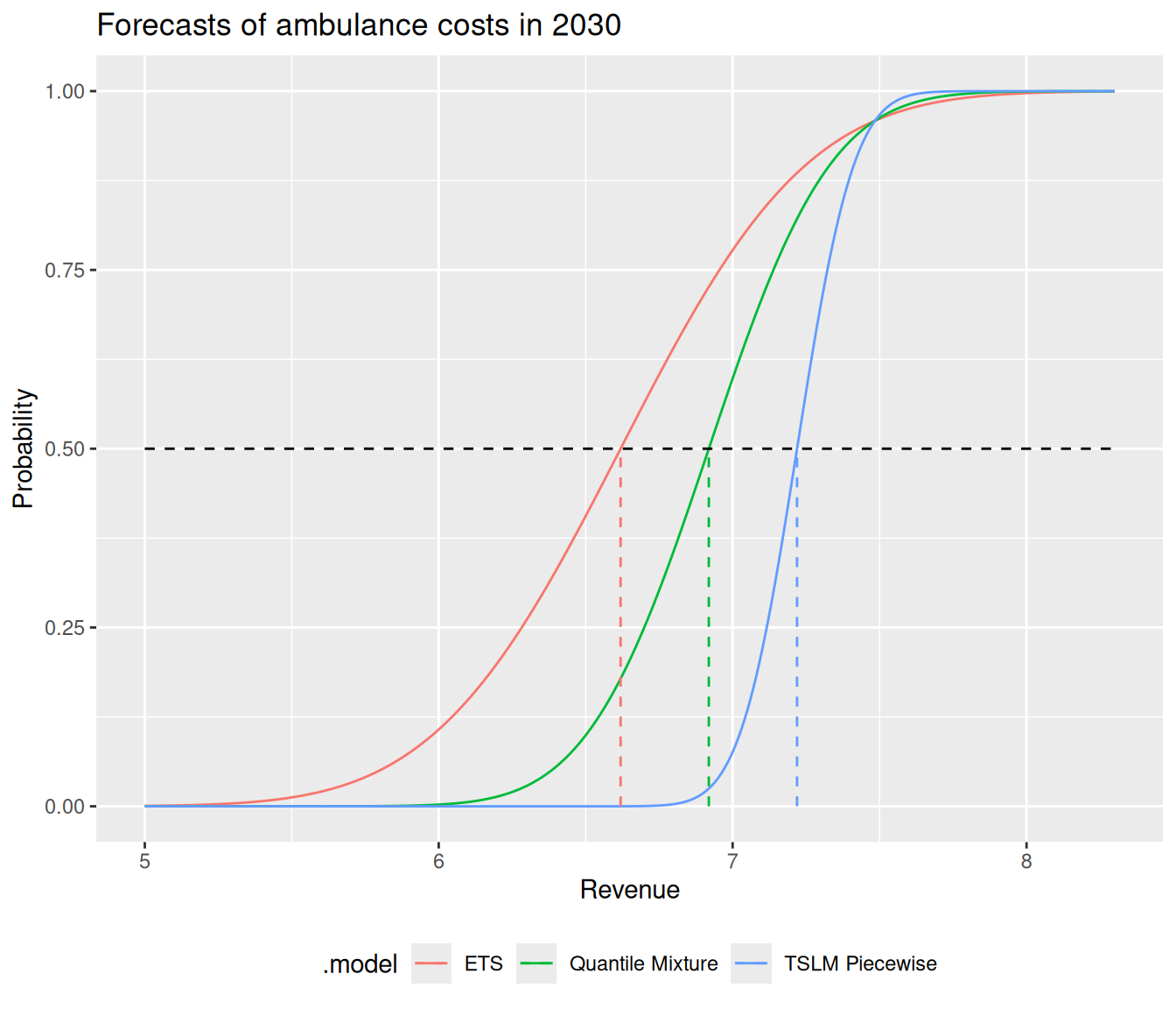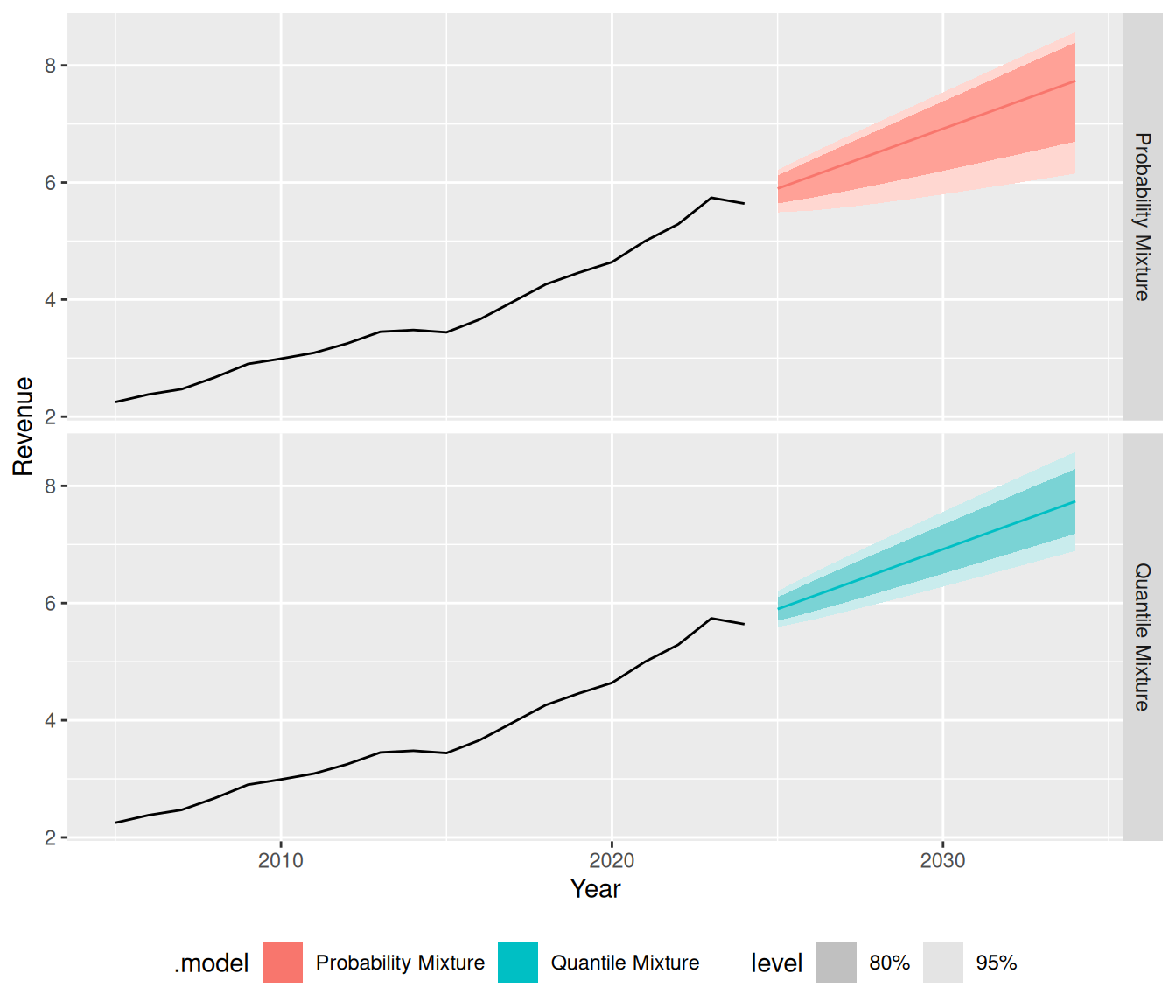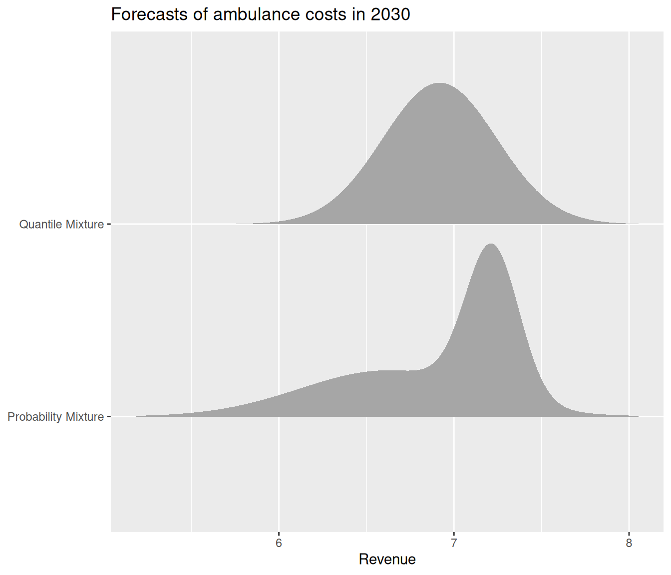 These forecast distributions can be combined mixture distributions which averages probabilities or quantiles.