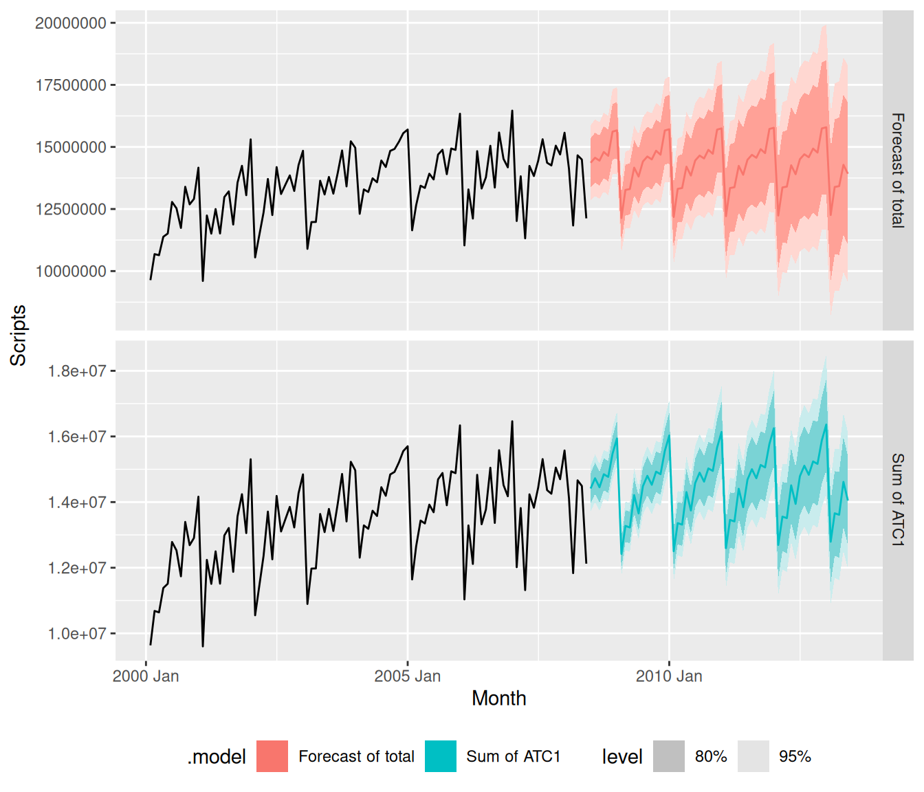 Forecasts of each series (total infections, and infections in each jurisdiction) won’t add up!